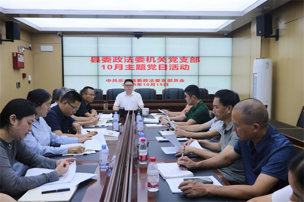 10月15日,县委政法委机关党支部开展10月主题党日活动。县委常委、政法委书记陈若旻以普通党员身份参加。会上,全体党员干部集中学习了近期习近平总书记重要讲话、重要指示批示精神和中央重...