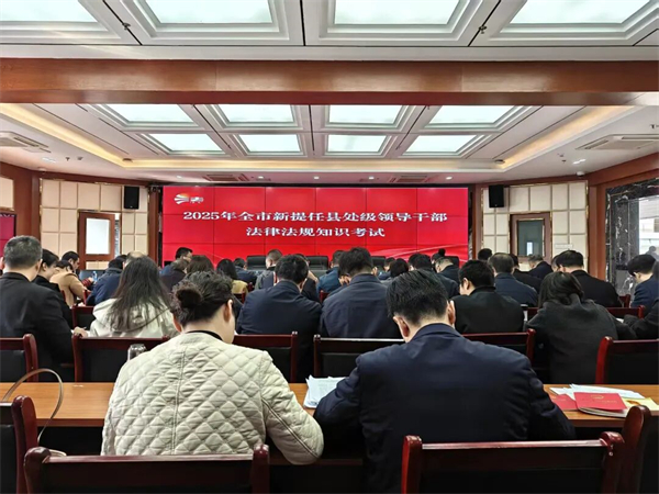 12月4日,抚州市2025年全市新提任县处级领导干部法律法规知识考试在市司法局指挥中心举行,42名领导干部齐聚考场,检验法治素养,筑牢依法执政根基。本次考试聚焦领导干部履职必备的法治能力...