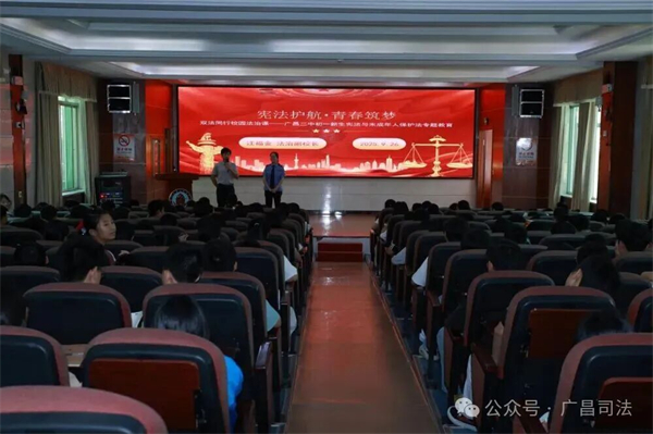 9月26日,为增强未成年人法治观念,提升其自我保护能力,广昌县司法局组织法治副校长走进广昌二中,为初一新生带来以《中华人民共和国宪法》《中华人民共和国未成年人保护法》为主题的法治教...