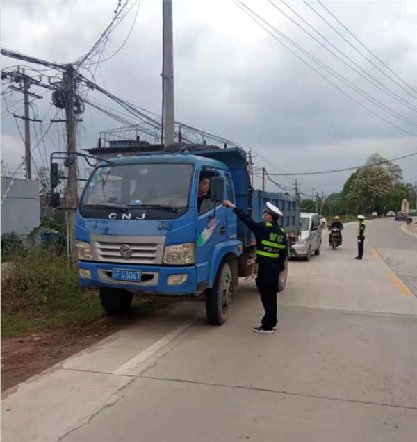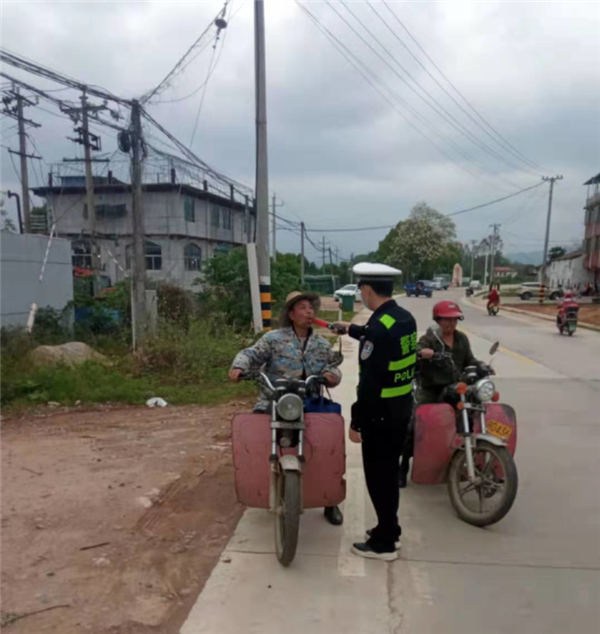 白天,大队针对辖区国省道及农村道路交通违法规律特点,在国省道及乡村道路重点路口、路段设置检查卡点,对过往的“两客一危一货”、面包车、二轮、三轮摩托车等重点车辆进行检查,及时发现和查处“三超一疲劳”、酒驾醉驾、“一盔一带”等重点交通违法行为。