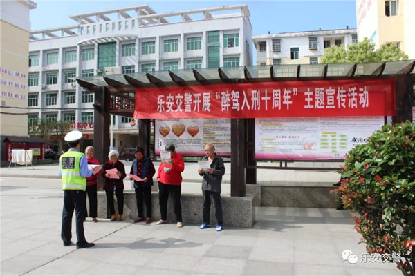 今年4月是全国“醉驾入刑”实施十周年,为切实提高群众对酒驾醉驾危害性的科普,从源头上预防和减少酒驾醉驾行为。4月22日,乐安县公安局交警大队开展“醉驾入刑”实施十周年主题宣传活动。