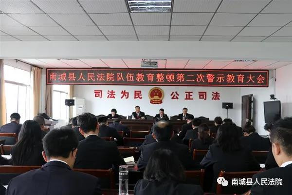 为全面推进队伍教育整顿查纠整改环节工作取得实效, 4月25日下午,南城县人民法院召开队伍教育整顿第二次警示教育大会,党组书记、院长周明文出席会议并讲话。会议由党组成员、副院长熊军主持。