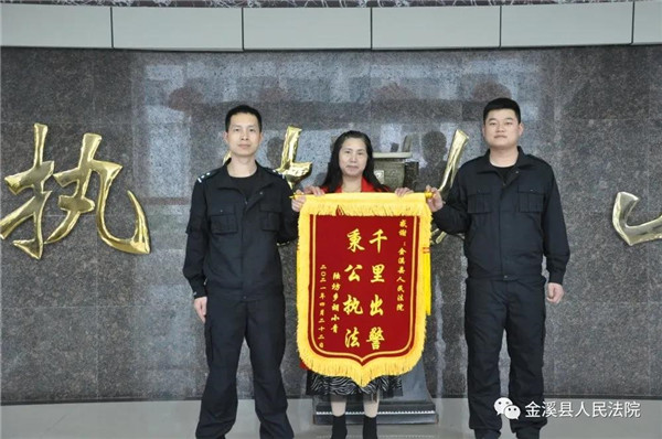 近日,申请执行人胡某特意赶到金溪县人民法院送锦旗,感谢法官辛劳为其执行,使其既收回了借款又和朋友重修于好。