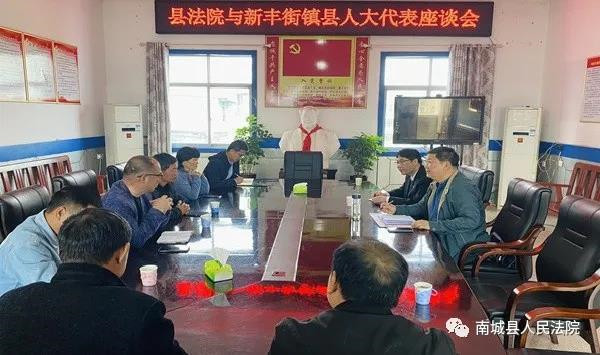 4月29日上午,南城县人民法院党组书记、院长周明文到新丰街镇人民政府,召开法院征求人大代表意见建议座谈会。