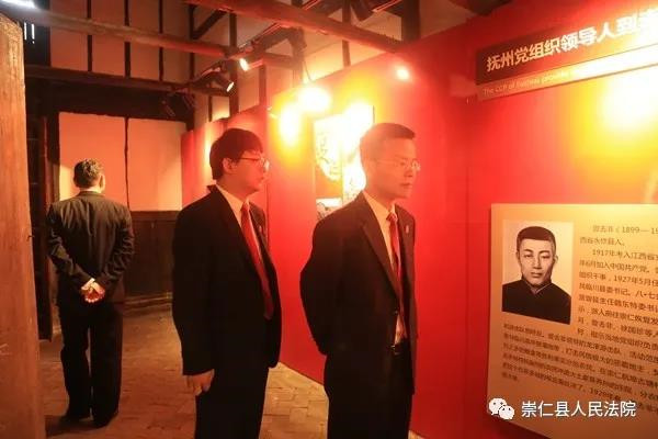 在鲜艳的党旗下,崇仁法院党组书记、院长钱永明带领20多位党员庄严宣誓,重温入党誓词,回想入党初心。在图文并茂的古塘支部历史中行走,学习以黄凤池同志为代表的革命先驱为革命的胜利、人民的解放抛头颅、洒热血的英雄事迹,全体党员干警接受了革命精神洗礼,净化了心灵,深化了境界,振奋了精神。