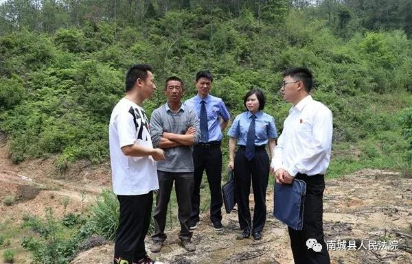 5月7日上午,南城县人民法院抚河流域环境资源法庭与南城县人民检察院办案人员在县林业局工作人员的陪同下前往南城县里塔镇都军村某公益林山场,查看植树造林情况。
