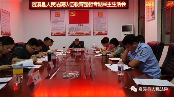 按照政法队伍教育整顿工作部署,为扎实推进政法队伍教育整顿落实落细,5月13日晚,资溪县人民法院领导班子召开专题民主生活会。县法院党组成员、县纪委监委驻县法院纪检监察组长徐玲到会指导,会议由院党组书记、院长曾胜龙主持,全体班子成员参加,各部门负责人列席会议。