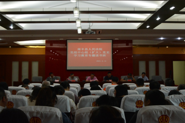 5月14日,南丰县人民法院党组中心组党史学习教育专题读书班暨理论学习中心组(扩大)学习会议召开。南丰县法院党组书记、院长李志毅主持会议并讲话。