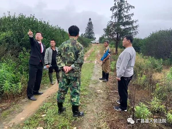 为更好地化解纠纷矛盾,5月19日,广昌人民法院赤水法庭庭长邹文飞带领专业评估人员深入涉案林地进行实地勘察,认真听取了双方当事人的意见,向周围群众了解相关情况,并由专业人员对涉案林地上的果树价值进行评估。