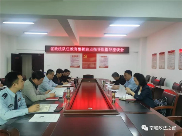 座谈会上,指导组听取了南城县政法队伍教育整顿查纠整改环节工作情况,以及县委政法委、县法院、县检察院、县公安局、县司法局查纠整改环节工作进展情况汇报,对我县政法队伍教育整顿工作给予了肯定,并就做好下一步工作提出要求。