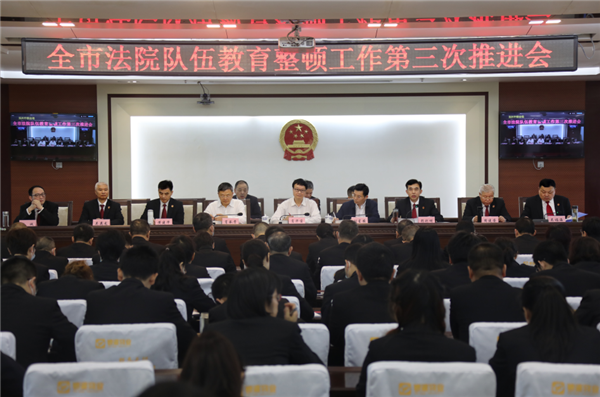 会议深入学习贯彻习近平法治思想、习近平总书记关于加强政法队伍建设的重要指示和训词精神,传达学习最近上级有关队伍教育整顿的会议精神和工作要求,并就进一步做好全市法院教育整顿查纠整改等工作提出要求。