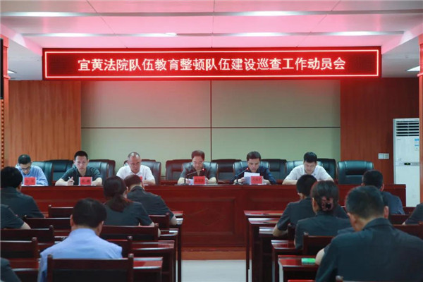 6月2日,宜黄县人民法院召开政法队伍教育整顿队伍建设巡查动员会。宜黄县政法队伍建设巡查二组组长吴植华同志一行出席会议,该院党组书记、院长陈剑波主持会议。全院干警参加会议。