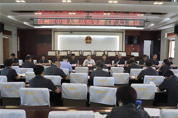 6月17日,抚州市中级人民法院召开党组(扩大)会议通报队伍教育整顿整治情况并作出政治承诺。市委常委、市委宣传部部长肖承贵同志出席会议并指导。市中院党组书记、院长赖彩明主持会议并讲话。
