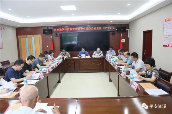7月6日,县政法队伍教育整顿领导小组办公室主任(扩大)会议在行政中心政法委会议室召开。县政府副县长、公安局局长、县政法队伍教育整顿领导小组副组长徐剑峰,县法院院长、县政法队伍教育整顿领导小组副组长曾胜龙,县检察院检察长、县政法队伍教育整顿领导小组副组长周广平,各专项组全体成员参会。会议由县委常委、政法委书记、县政法队伍教育整顿领导小组副组长黄惠忠主持。