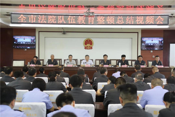 赖彩明指出,队伍教育整顿工作开展以来,全市法院认真学习贯彻习近平总书记关于加强政法队伍建设的重要指示精神,严格按照全国、省、市政法队伍教育整顿领导小组的部署要求,紧紧围绕“五个过硬”总目标,聚焦“四大任务”,紧扣“三个环节”,切实提高政治站位、自觉扛起政治责任,周密谋划部署、精心组织实施、从严推进落实,圆满完成各项工作任务,政治自觉不断增强,英模精神得到弘扬,队伍面貌焕然一新,群众满意度显著提升,教育整顿工作取得了明显成效。主要表现为政治忠诚全面筑牢,英模精神得到弘扬,自我革命彰显勇气,问题整改显现成效,制度建设得到完善,执法办案效果明显,服务群众赢得赞誉等。