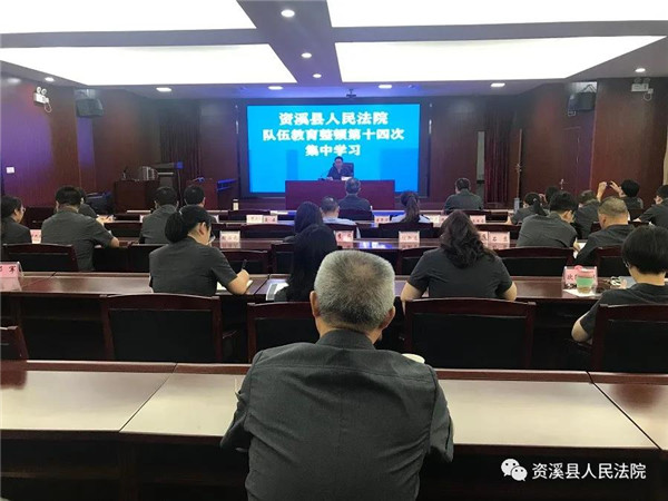 7月7日上午,资溪县人民法院召开了队伍教育整顿第十四次集中学习,院党组书记、院长曾胜龙及全体在职在编干警参加会议。