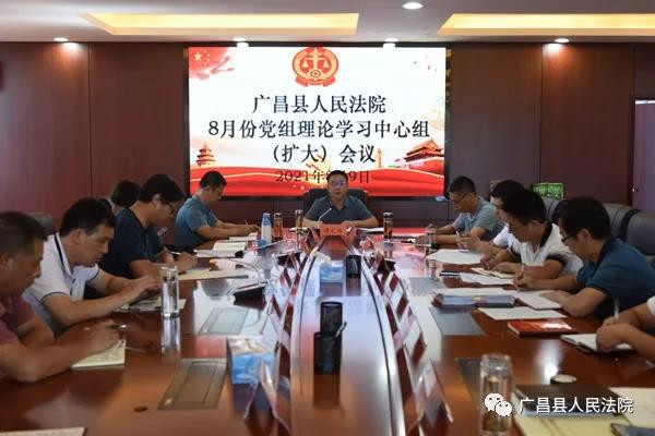 8月9日,广昌县人民法院召开8月份党组理论学习中心组(扩大)会议,该院党组书记、院长谭文强主持会议并讲话。