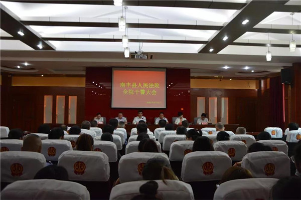 8月25日,南丰县人民法院召开全院干警大会,宣布主要领导人事任免。市中院党组成员、副院长黄建华,县委常委、组织部部长熊枝星、南丰法院党组书记、院长李志毅,南丰法院院长候选人王芳等出席会议,南丰县人民法院全体干警参加了会议。