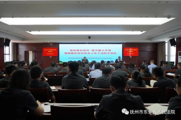 为促进全院干警充分认识意识形态工作重要性,9月23日,抚州市东乡区人民法院举办“社会主义意识形态”宣讲会,特邀市委网信办秘书科科长吴牧山同志为全院干警作专题宣讲。院党组书记、院长李好生主持会议并讲话。