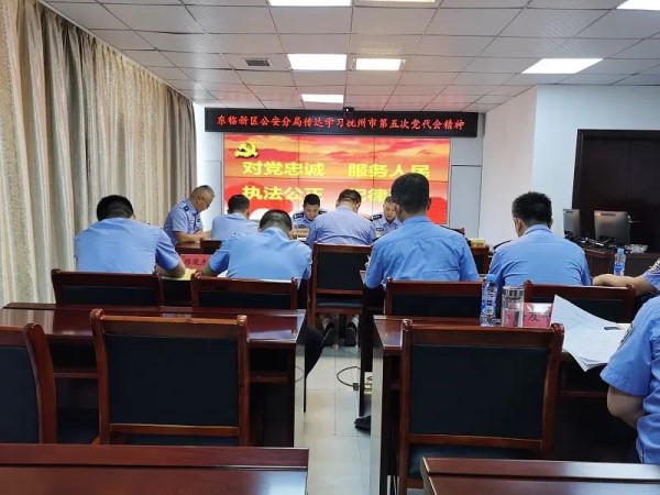 2021年10月9日,东临新区公安分局召开党委扩大会,专题学习宣传中国共产党抚州市第五次代表大会精神,党委书记、局长梅建明主持会议并领学。在家班子成员及各科室负责人参加会议。
