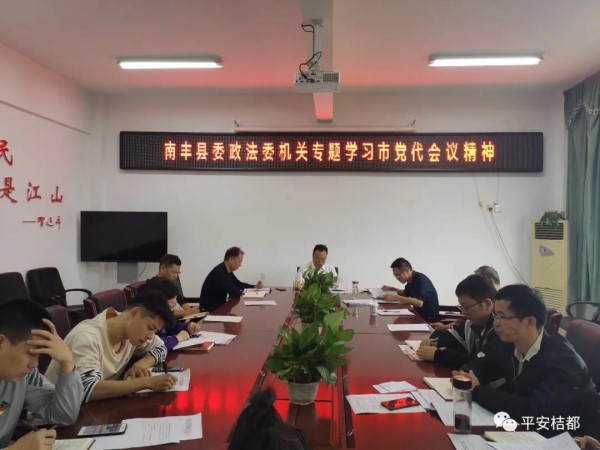 10月12日,县委政法委组织召开会议,专题传达学习了市第五次党代会精神,部署贯彻落实工作。县委常委、政法委书记游俊出席并讲话。委机关全体干部职工参加会议。