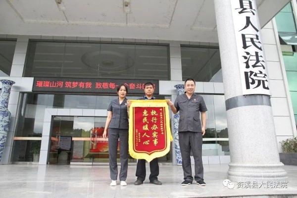 2021年10月12日,一大早,贵州的农民工盛某拿着一面 “执行办实事、惠民暖人心”的锦旗走进了资溪县人民法院,握住执行法官的手说“感谢法院法官为我追回工资,我心里终于踏实了!”