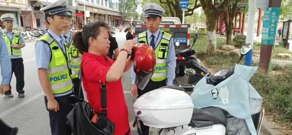 对于未戴头盔的骑乘人员,执勤交警有针对性地进行教育、引导,以案说法,用真实事故提醒佩戴安全头盔的重要性,并帮助大家正确佩戴安全头盔,扣紧“生命扣”,确保自身和他人生命财产安全。