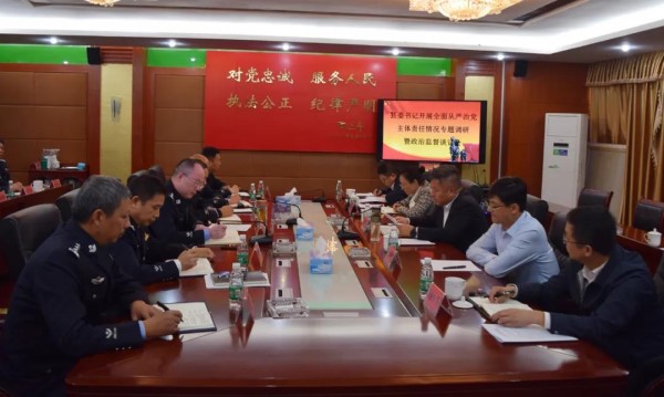 调研中,徐剑峰首先汇报了县公安局党委2021年以来落实全面从严治党主体责任情况,简要报告了落实全面从严治党主体责任的主要做法及成效,分析了工作中存在的问题及不足,结合实际提出了下一步工作打算。