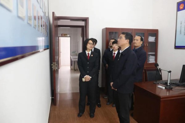 周有智一行首先来到南丰县人民法院市山人民法庭、诉讼服务中心、家事审判法庭等场所进行调研指导。