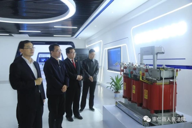 周有智一行首先来到 江西明正变电设备有限公司,走访了市人大代表孙建辉,实地察看了该企业生产车间及沉浸式展厅,对企业生产经营、劳动用工、资金信贷等方面的情况进行详细了解;同时仔细听取企业在优化营商环境方面的司法需求,并征求企业对法院工作的意见建议。随后,周有智一行来到崇仁县人民法院诉讼服务中心进行调研指导,了解该院一站式建设情况。