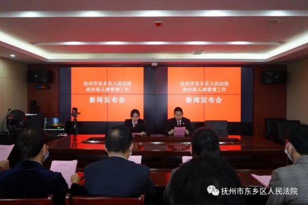 11月1日,抚州市东乡区人民法院在诉讼服务中心三楼执行指挥中心召开“人事管理工作”新闻发布会。