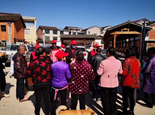 活动开始,志愿者一行12人组成综合宣传工作组,于上午9点在集镇所在地--孔坊村中心广场处集合,集中摆放扫黑除恶、反电信网络诈骗、反邪教和禁毒有关宣传牌,并准备好县政法下发印有扫黑除恶宣传内容的餐巾纸,广泛吸引群众注意力,集中宣传平安创建各种政策内容。