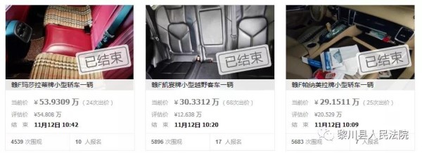 为提升渉执财产处置效率,最大化维护当事人合法权益,黎川县法院创新执行理念,充分依托网络司法拍卖受众广、成本低等优势,结合执行案件情况和“双十一购物狂欢节”特殊节点,选定了保时捷牌凯宴、帕拉梅拉及玛萨拉蒂牌Ghibli三辆汽车于11月11日上架拍卖。