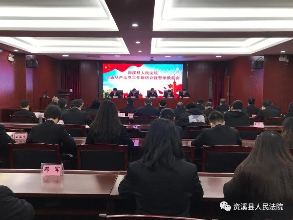 11月19日,资溪县人民法院召开全面从严治党工作推进会暨警示教育会,县法院党组书记、院长林学文出席并讲话。全院干警(含聘用人员)参加会议。