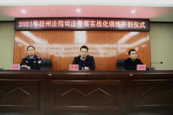 11月22日下午,2021年抚州市司法警察实战化训练班在宜黄县委党校开班。宜黄县委常委、政法委书记李坚,抚州中院法警支队支队长罗克勤、宜黄县人民法院党组书记、院长上官笑东出席会议。