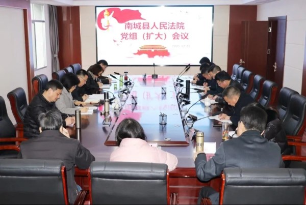 12月21日,南城县人民法院召开党组扩大会议,迅速传达贯彻全市法院院长会议精神。该院党组书记、院长谭文强主持会议并讲话。