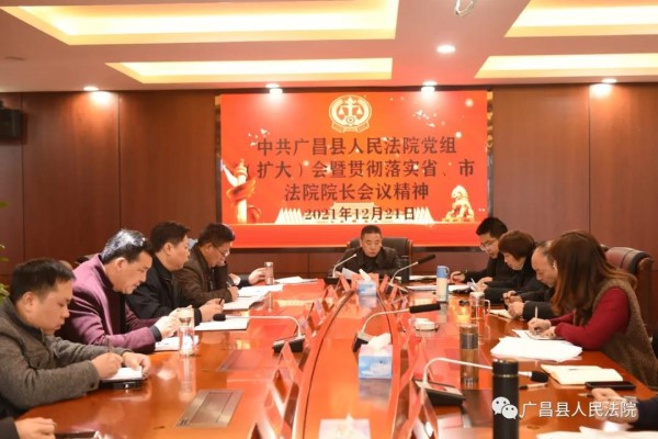 12月21日,广昌县法院召开“学习省市法院院长会议精神”为主题的党组(扩大)会议。该院党组书记、院长王建荣主持会议,在家院领导、科级以上干部、各部门负责人、员额法官出席会议。