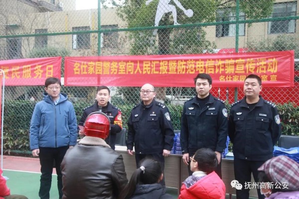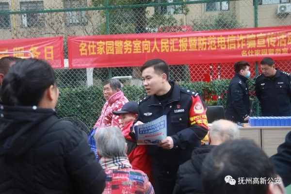 2022年1月1日上午,高新公安分局城西派出所名仕家园警务室联合分局刑警大队、城西街办安石社区在名仕家园小区内开展“向人民汇报”暨防范电信诈骗宣传活动,分局党委委员、副局长祝文祥参加此次活动。