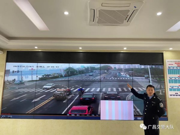 随后小朋友们来到大队八楼交通信息研判指挥中心。在指挥中心,民警向师生们介绍了指挥中心的作用和功能,并通过播放实时电子监控视频,深入浅出地向小朋友们对监控画面中行人的交通行为进行讲解,分析对错,让他们在感受到科技助警力量的同时,学习基本的交通安全知识。