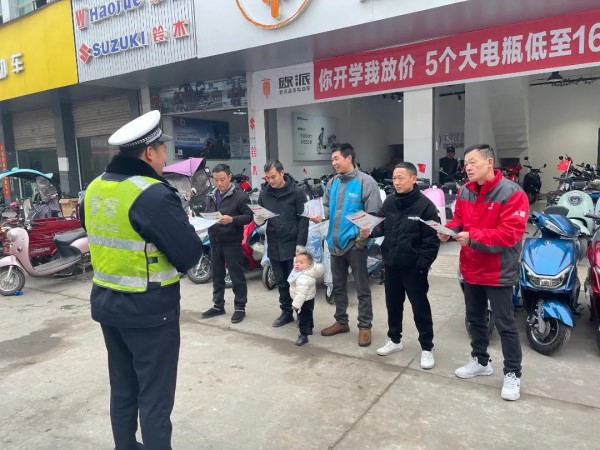 在宣讲交通安全知识的同时,民警向店主讲解不同电动车需要挂的车牌及需要考取哪种驾驶证,要求店主督促群众在购买车辆后及时办理相关手续,提醒前来购买车辆的驾乘人员正确佩戴安全头盔,骑车上路时遵守交通法律法规,力争从源头提升交通安全参与者的法制意识和安全防护意识。