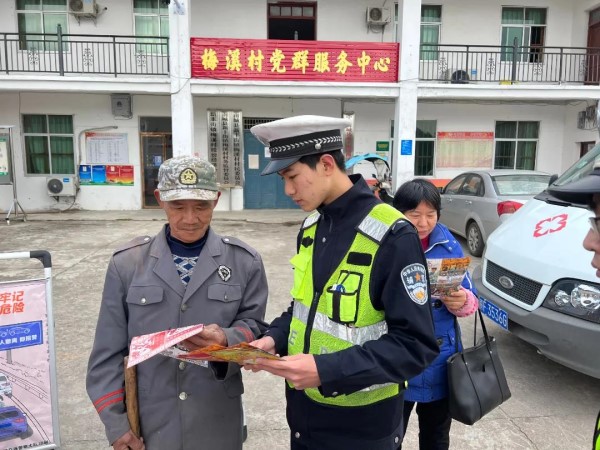 同时,民警对驾乘车辆不系安全带、不佩戴头盔、无证无牌驾驶、酒后驾驶、三轮车违法载人可能引发的严重后果进行讲解,提醒大家自觉遵守交通法规,抵制危险驾驶和不文明驾驶行为,引导村民及时劝导制止违法行为或向相关执法部门举报,号召大家当一名交通安全宣传员,以“一人带动一村”的思路,让更多的人参与进来,做到守法规知礼让、安全文明出行。