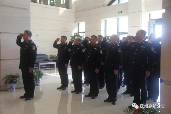 参观结束后,党员民警现场重温了入党誓词,“我志愿加入中国共产党,拥护党的纲领....”鲜红的党旗下,大家整齐列队、高举右拳、庄严宣誓,一字一句,神圣而豪迈,强烈震撼着在场的每一名党员民警,进一步增强了大家履行好新时代使命担当的信心和决心。