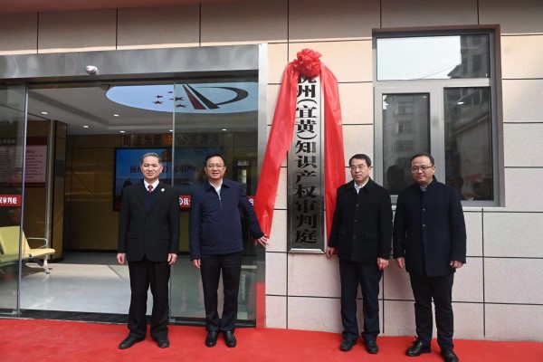 1月13日,抚州(宜黄)知识产权审判庭揭牌仪式在抚州宜黄县人民法院举行,该法庭是抚州市唯一的专业审判第一审知识产权案件的基层审判法庭,涉及100万元以下标的知识产权案件均可实现在该庭就地审理。抚州市中院党组书记、院长周有智、省高院民三庭庭长郑红葛、省高院民三庭副庭长罗伟、市中院审判委员会专职委员王明华等同志参加揭牌仪式。陈小青、李坚、胡海、罗杰、上官笑东等县领导同志出席揭牌仪式。揭牌仪式由宜黄县委常委、政法委书记李坚主持。