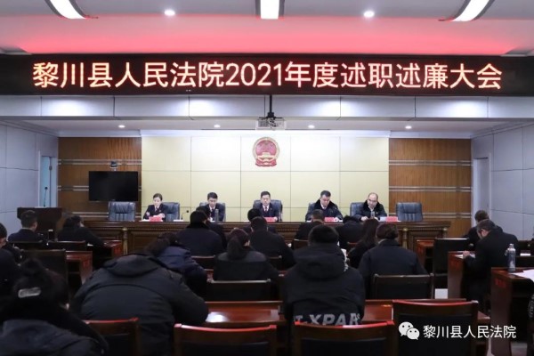 1月7日下午,黎川县人民法院召开2021年度述职述廉大会,县法院党组书记、院长朱永泉出席会议并讲话,中层干部及员额法官进行述职述廉,全院干警参会。