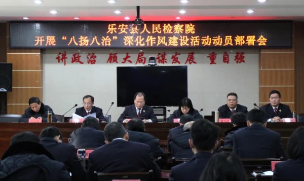 1月19日,乐安县人民检察院召开“八扬八治”深化作风建设活动动员会,党组书记、检察长乐新义对开展“八扬八治”深化作风建设活动进行了动员部署。