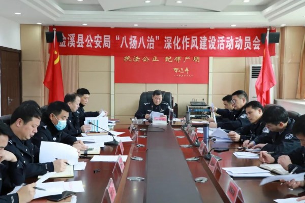 2022年1月18日上午,金溪县公安局以党委扩大会议形式召开“八扬八治”深化作风建设活动动员部署会,深入贯彻落实市委、县委关于开展“八扬八治”深化作风建设的精神。全体局领导班子、各科所队室及森林分局负责人参会。