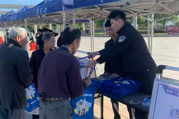 2025年10月29日上午,广昌县公安局刑侦大队组织民辅警深入莲花广场,参加由县民政局、县城市社区管委会等多部门联合主办的2025“重阳节”助老敬老莲花广场公益集市暨“99公益慈善文艺演出”活动,面向现场老年群体开展防范养老诈骗专项宣传活动,以实际行动守护老年人财产安全,为传统佳节增添别样的“平安温度”。