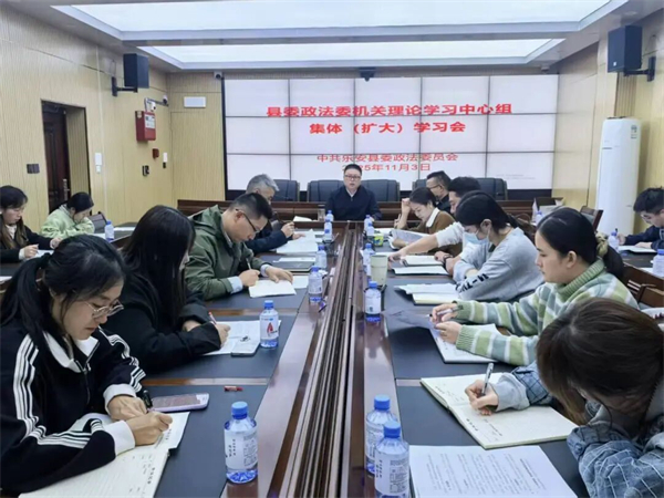 11月3日,县委政法委召开理论学习中心组集体(扩大)学习会,传达学习习近平总书记在党的二十届四中全会上的重要讲话和会议精神,中央政法委、省委政法委和市委政法委有关传达学习贯彻党的二十届四中全会精神的会议精神以及全省、全市、全县领导干部会议精神,部署贯彻落实意见。县委常委、政法委书记陈若旻主持会议并讲话。