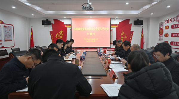 12月23日,市委政法委员会委务会全面从严治党专题会召开,总结全年全面从严治党情况,分析研判形势,部署下一步工作。市委常委、政法委书记姚飞翔出席会议并讲话,市纪委监委派驻市委政法委纪检监察组组长郑须生同志到会指导并提出工作要求,委机关领导班子成员,各科室负责人参加会议。